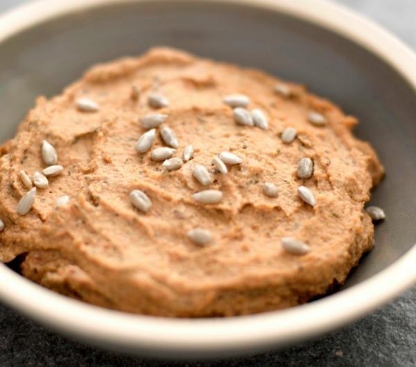 - 2 puszki białej fasoli- 10 kawałków suszonych pomidorów z zalewy- ok. 10 kawałków karczochów z zalewy- 5 łyżek prażonego słonecznika- 4 łyżki oleju z zalewy pomidorów- 2 obrane ząbki czosnku- 2 łyżeczki suszonego tymianki- 2 łyżki soku z cytryny- sól, pieprzWszystkie składniki blenduję na gładką masę. Jeśli pasta jest zbyt sucha, dodaję oliwę lub wodę.Próbuję pasty i w razie potrzeby jeszcze raz pieprzę i solę do smaku.Smacznego!