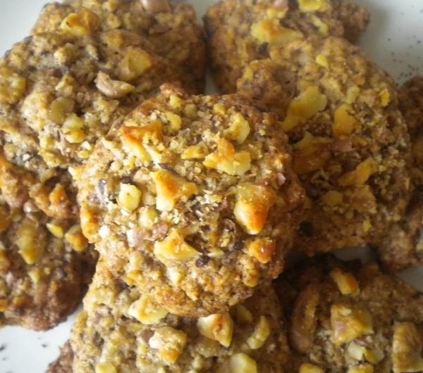 125 g miękkiego masła1/3 szklanki brązowego cukru1 jajko1 szklanka mąki razowejpół łyżeczki proszku do pieczenia1 szklanka płatków owsianych2 garście orzechów włoskichpół tabliczki czekolady mlecznejpół tabliczki czekolady gorzkiejPRZYGOTOWANIEW mikserze ucieramy masło z cukrem. Dodajemy jajko, mąkęi proszek do pieczenia. Chwilę miksujemy.Na koniec wrzucamy płatki owsiane, drobno pokrojoną czekoladę i 2/3 posiekanych orzechów.