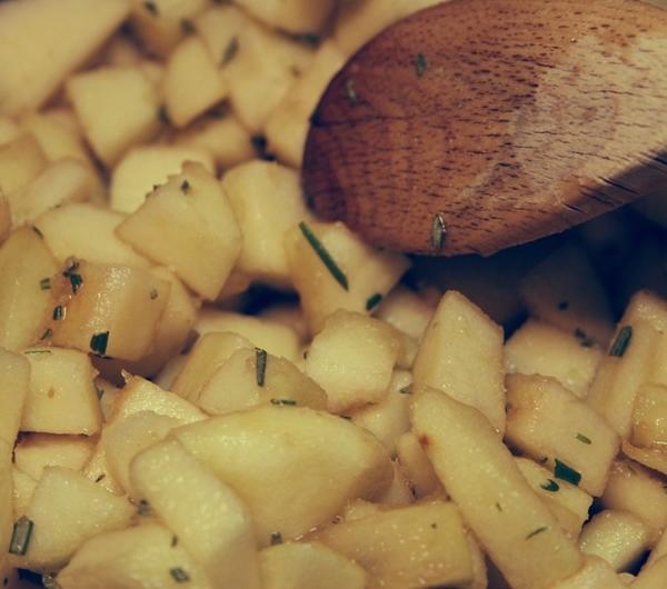 Gotujemy jabłka około 10 minut, a następnie wlewamy do blendera i miksujemy do momentu aż będzie miało konsystencję pure.