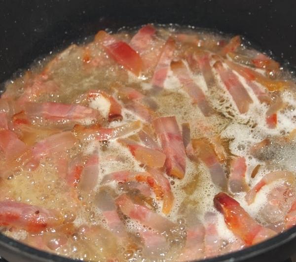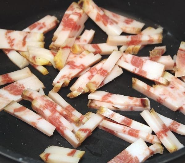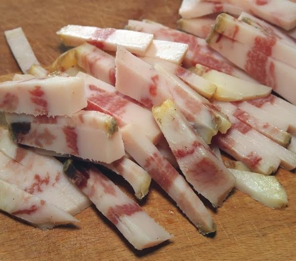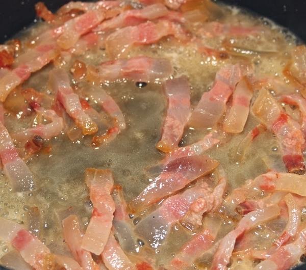 boczku a nie guanciale (tak jak w Carbonara, to właśnie ten składnik zmienia smak)- użycie
