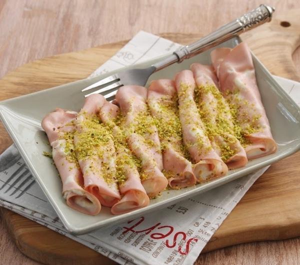 Składniki na 8 rollsów:8 plastrów mortadelli(najlepiej włoskiej)30 g pistacji100 mlekasól i pieprzPrzygotowanie:W blenderze miksujemy na proszek pistacje. Odkładamy 2 ły ż ki do dekoracji proszku pistacjowego.W miseczce mieszamy serek philadelphia z mlekiem i proszkiem pistacjowym.