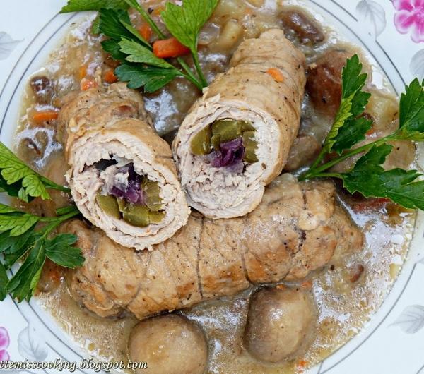 W domu remont. jesteśmy do połowy kwietnia pozbawieni całej kuchni :(. ostała nam się tylko lodówka i mój wspaniały multicooker dzięki, któremu nawet podczas remontu mogę dalej przygotowywać wspaniałe i pyszne dania.SKŁADNIKI:800 g mięsa wołowego (udziec)500 g pieczarek1 opakowanie mrożonki (zupa grzybowa mroźna kraina)2 duże czerwone cebule (posiekać)8 ogórków kiszonych (słupki)400 ml jogurtu naturalnegosól himalajska2 liście laurowe3 ziarenka ziela angielskiego2 ziarenka owoców jałowca7 ziarenek pieprzuświeżo mielony pieprzprzyprawa: suszone pomidory z bazylia i czosnkiemmusztarda sarepska1 litr wodyPRZYGOTOWANIE:Mięso kroimy na plasterki i ubijamy na cienkie plasterki (duże plastry). Mięso posmarować musztarda, doprawić solą, pieprzem i przyprawą (pomidory z bazylia i czosnkiem). Wypełnić cebulą i ogórkami i zawinąć. Ja musiałam związać mięso żeby roladki się nie rozwinęły.W multicookerze ustawiłam opcję FRY i czas 10 minut. Obsmażyłam roladki z każdej strony. Do misy wlałam wodę, umyte pieczarki, przyprawy i zawartość opakowania z mrożonką. Następnie program STEW i czas 60 minut. W połowie otworzyłam pokrywę i odlałam do naczynia 2 chochelki wywaru żeby ostygł (zamknęłam pokrywę). Zmieszałam go z jogurtem. na 10 minut przed końcem otworzyłam pokrywę i dolałam do misy jogurt wymieszany z wywarem. przemieszałam i zamknęłam pokrywę.