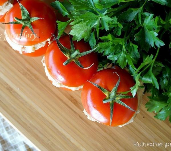 pomidory. Na wierzch nakładamy odcięte kapelusiki.
