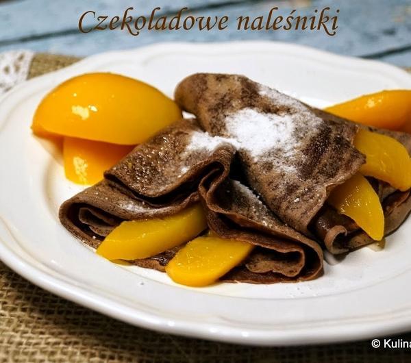 Naleśniki często pojawiają się na talerzach w naszym domu. Wszyscy bardzo je lubią, bo dają duże możliwości w komponowaniu dodatków z którymi je zjemy. Podaję je na słono, na przykład jako ruskie krokiety, krokiety z pieczarkami czy naleśniki ze szpinakiem i fetą . Najczęściej jednak jadamy je na słodko, mąż z dodatkiem różnego rodzaju domowych dżemów, konfitur czy powideł. Moje dziewczyny uwielbiają smarować je z nutellą, a ja najchętniej jadam je z cukrem. Po prostu gorący naleśnik posypuję cukrem, zwijam go i już :-). Dziś postanowiłam troszkę odmienić tę klasyczną wersję naleśnika i zrobić naleśniki czekoladowe. Podajcie je ze swoim ulubionym dodatkiem.A przy okazji, czy w Waszych domach też używało się skórki ze słoniny do natłuszczania patelni ?Czas przygotowania: 45 minutSkładniki:250 g mąki pszennej250 ml mleka2 jajkaszczypta soli2 łyżki roztopionego masła3-4 łyżeczki kakaowoda mineralnaWykonanie:Składniki ciasta, oprócz wody, miksujemy (choć najlepsze naleśniki wychodzą, gdy miesza się je ręcznie trzepaczką) i odstawiamy na 30 minut. Po tym czasie dodajemy tyle wody, aby uzyskać ciasto o konsystencji rzadkiej śmietany. Naleśniki smażymy z obydwu stron na mocno rozgrzanej patelni, nie ma już potrzeby dodawania tłuszczu do smażenia. Ja używam do naleśników starej wysłużonej żeliwnej patelni, do której nic nie przywiera. Po usmażeniu układamy jeden na drugim na talerzu.
