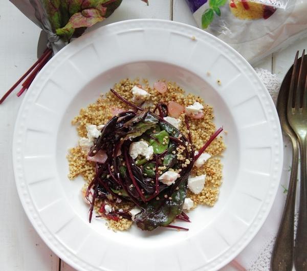 buraki na moich grządkach raczyły się zbuntować. Wypuściły liście i już. Fakt jednak, że liście piękne i bardzo smaczne. Stąd pomysł na wykorzystanie ich w letniej