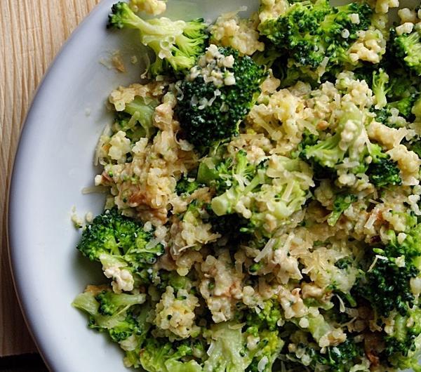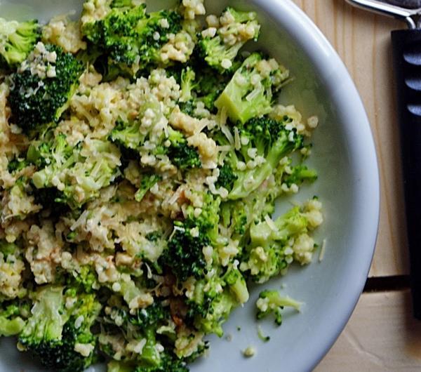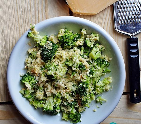 brokuła, wymieszaj do połączenia się składników. Na koniec danie przełóż na talerz, posyp