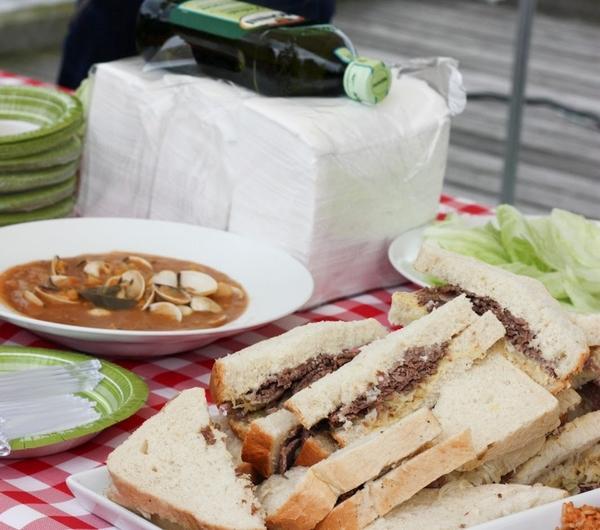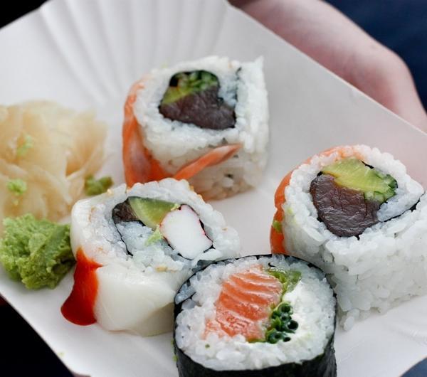 Najbardziej obleganym było stanowisko Hashi Sushi - kolejka na 20 minut, w trakcie można było podglądać jak sushi powstaje na miejscu. Jako fanka sushi nie mogłam sobie odmówić. Jadłam lepsze, ale może to przez bardzo pikantny sos, który wypalił mi nos ;) Po raz pierwszy spróbował surowego tuńczyka.