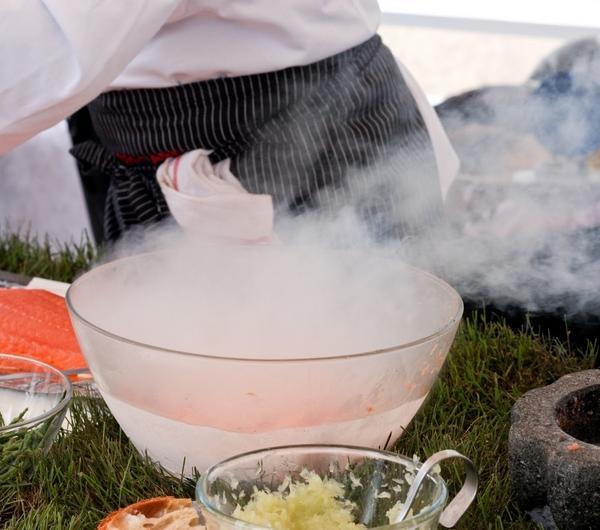 Danie, które najbardziej mi smakowało - tatar z łososia w ciekłym azocie z morskimi szparagami i chipsami prosto z rąk thefood.pl.