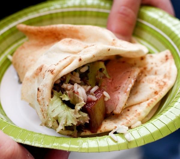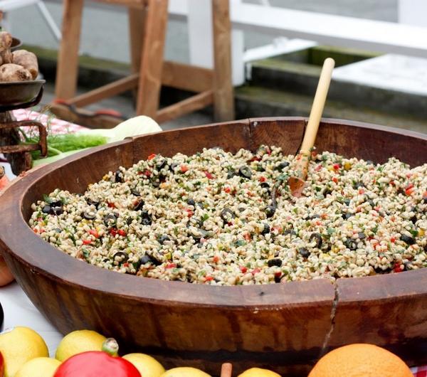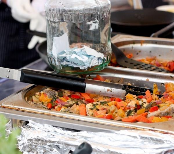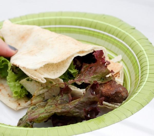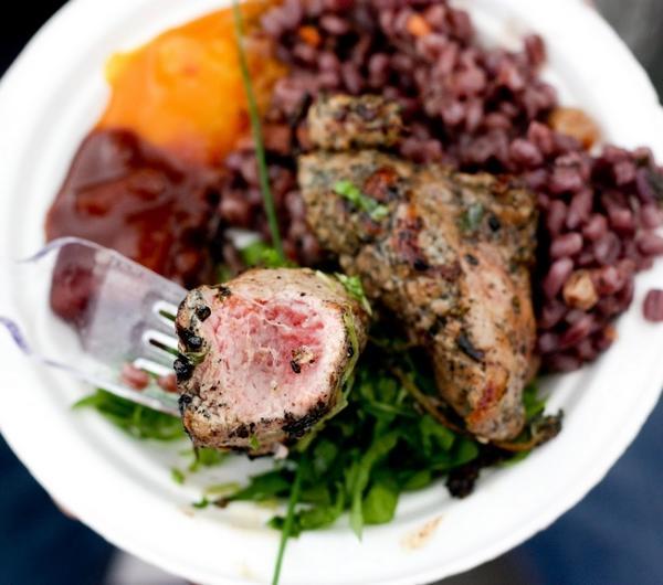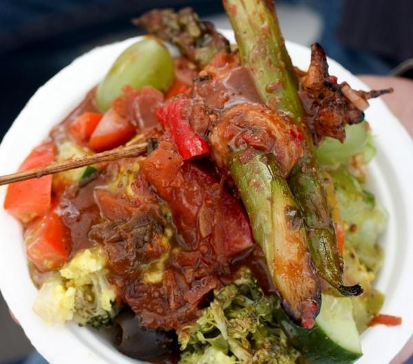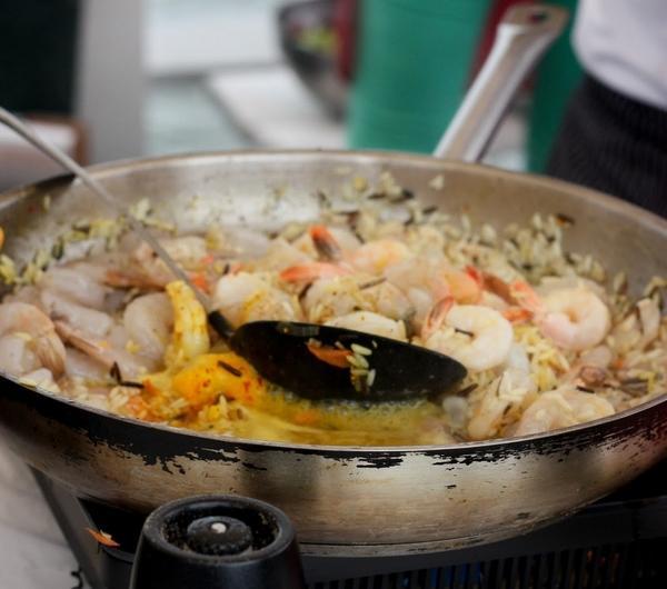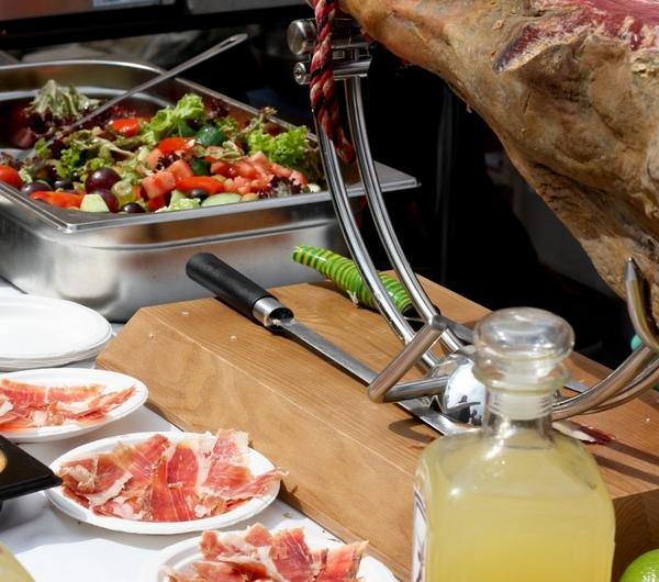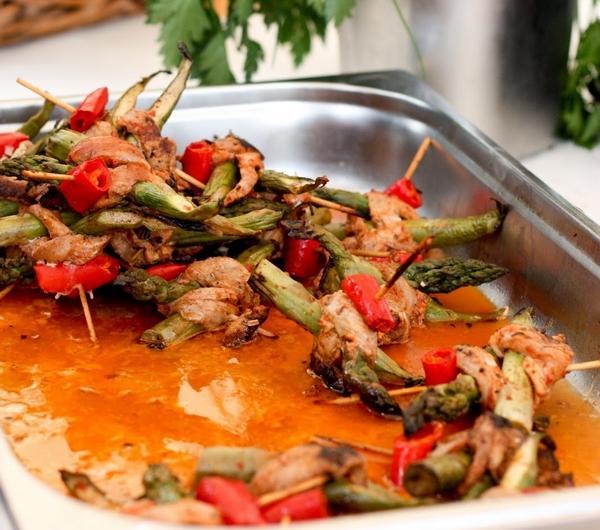 Restauracja Tapas de rucola - najbardziej wesołe stanowisko ze smacznymi szaszłykami z wieprzowiny ze szparagami podane niestety na twardawej (niedogotowanej?) kaszy jaglanej.