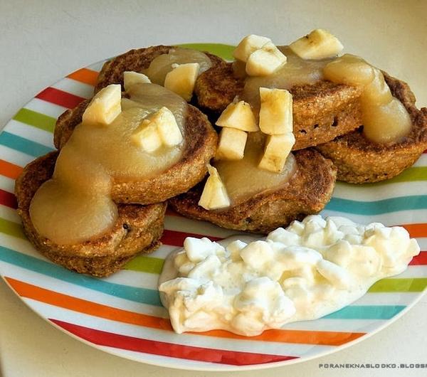 serkiem wiejskimGraham apple pikelets with dates, cloves, cinnamon, apple sauce and cottage cheese