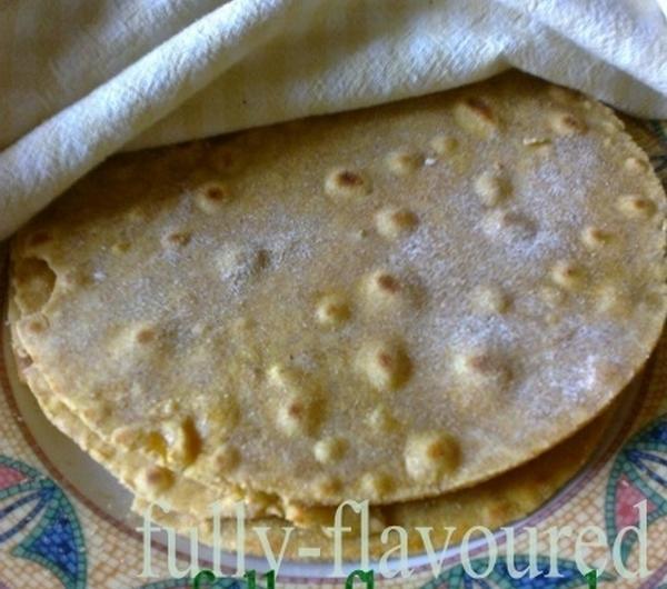 Na placki:· 160 g mąki kukurydzianej· 100 g mąki orkiszowej pełnoziarnistej· 1 jajko· 1/2 szklanki mleka· 1 łyżeczka soli· 3 łyżki oliwy spod suszonych pomidorów· szczypta proszku do pieczeniaZ podanych składników wyrabiamy ciasto- łączymy mąkę z solą, proszkiem do pieczenia, dodajemy jajko, oliwę oraz stopniowo mleko. Zagniatamy ciasto. Odstawiamy przykryte ściereczką na około pół godziny. Po tym czasie dzielimy ciasto na 7-8 części (tyle powinno wyjść placków), wałkujemy, wykrawamy okręgi - za pomocą talerzyka. Smażymy na suchej teflonowej mocno rozgrzanej patelni z każdej strony do momentu aż zaczną pojawiać się pęcherzyki, a ciasto nieco zbrązowieje. Odkładamy na stosik. Aby tortilla lepiej się zwijała, placki można przykryć wilgotną ściereczką.Farsz do tortilli jest już tylko kwestią naszej wyobraźni. Ja na dziś proponuję lekki farsz warzywny.