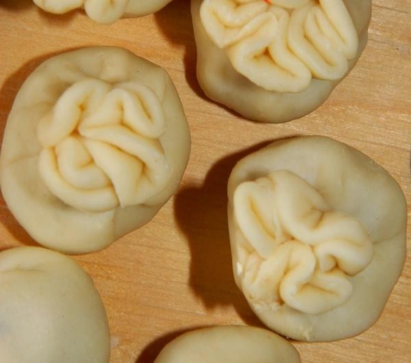 sos sojowy. Mieszaninę przepuszczamy przez maszynkę do mielenia (tarcza o drobnych oczkach). Doprawiamy ją do smaku.Zarabiamy ciasto.Do