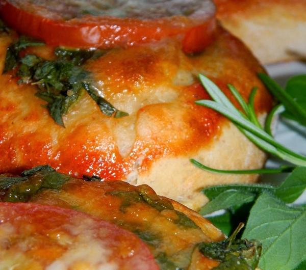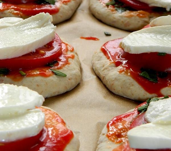 paprykę).Układamy mini-pizze na blaszce wyłożonej pergaminem i pieczemy 30 minut w piekarniku nagrzanym do 190*C (na złoty kolor).