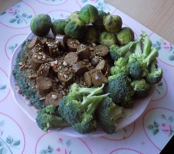 Lodybanan - kiwi - awokado - maca Podane z tahini i figami suszonymiPierwsze, ale nie ostatnie tego typu śniadanie na moim blogu :DDziś mam dla was pierwsze danie z wykorzystaniem produktów firmy tofutotu.pl - parówkami z tofu .Od razu byłam ciekawa czy mają one inny smak niż te klasyczne, sojowe .I jak ? Jestem totalnie zaskoczona ich smakiem, bo są o niebo lepsze od sojowych,choć w sumie oba produkty mają ten sam składnik - soję.I fajny smak tych parówek skomponował się z mocno zielonym plackiem szpinakowo - pomarańczowy i Mieszanką Piekło - NieboGryczany pomarańczowo - szpinakowy z Mieszanką Piekło - Niebo, Parówkami Tofurky, brukselką, brokułami.Przepis:- 6 łyżek kaszy gryczanej zmielonej na mąkę- sok z 1 pomarańczy- 1/2 szkl mrożonego szpinaku, uprzednio odmrożonegoWszystkie składniki dokładnie ze sobą wymieszać i piec placek na dobrze rozgrzanej patelni teflonowej z dwóch stron.Smacznego ! :)