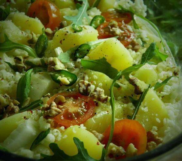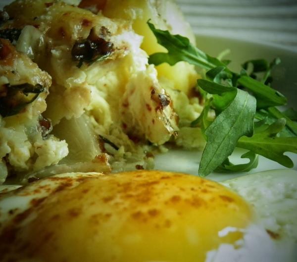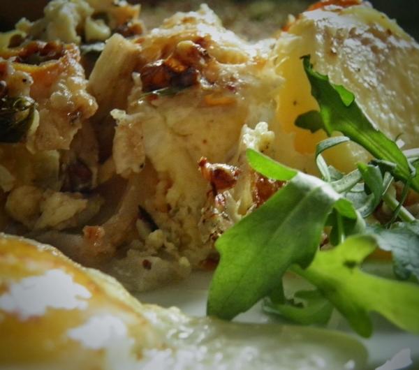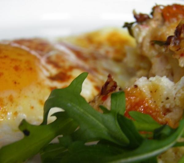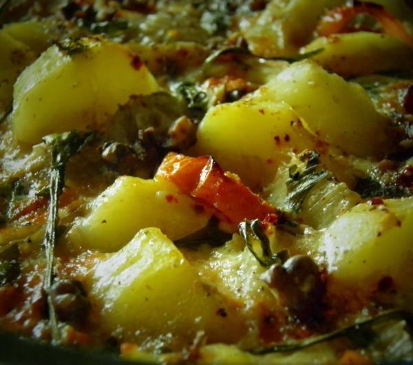 płatkami chili. Piekę pod przykryciem ok. 40 minut ( temp. 200 stopni C), po czym zdejmuję pokrywę naczynia i przez 10 minut rumienię zapiekankę.Przepis autorski.