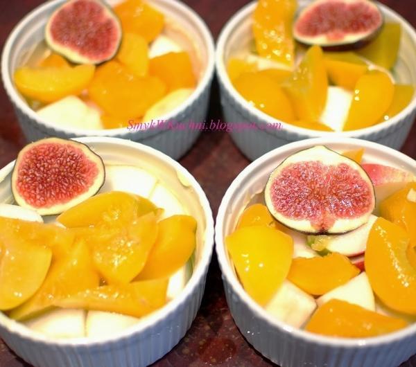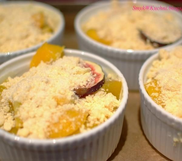 figi w plasterkach. Wszystko posypujemy kruszonką (duuużo kruszonki ;-D )Wstawiamy do pieca temp.: 200 stopni C, czas 25- 30 minut. Kruszonka ma się przyrumienić.Rada:Smak możecie wzbogacić dodając