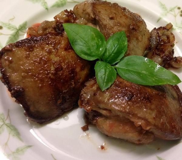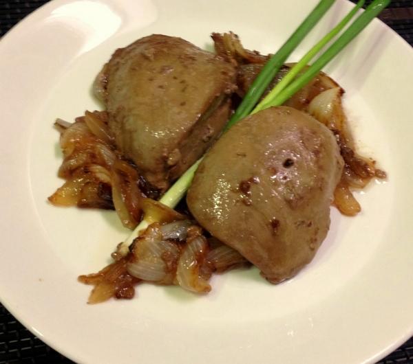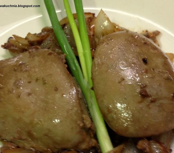 wątróbki gęsie, wykonane w najprostszy i najbardziej tradycyjny sposób, czyli smażone z