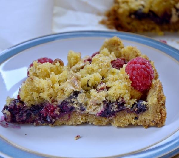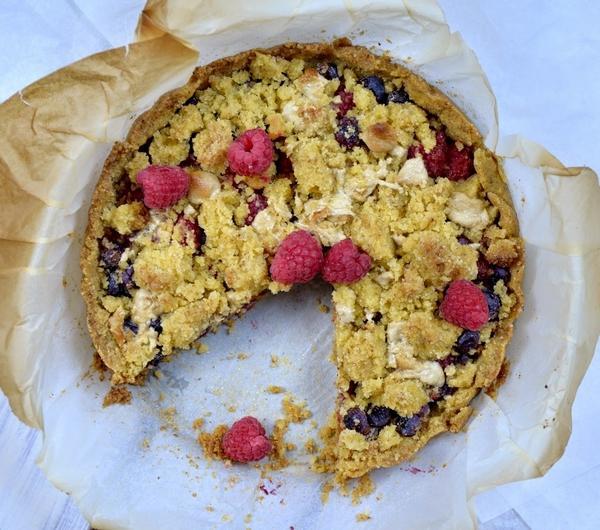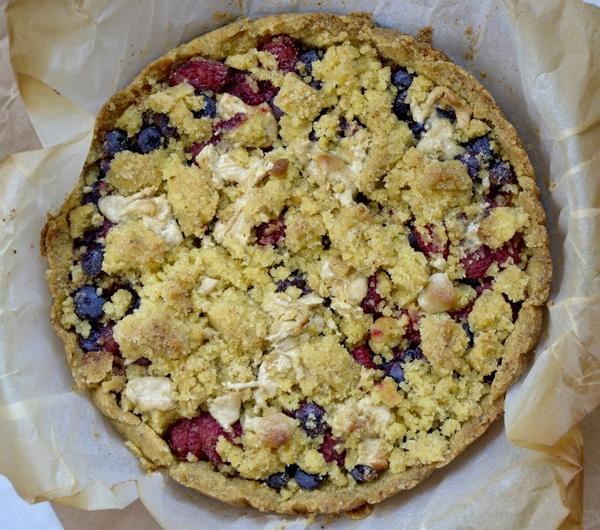 owoce. Piekłam dalej, około 20 minut, aż kruszonka zbrązowiała.4. Tuż przed końcem pieczenia, posypałam wierzch pokruszoną