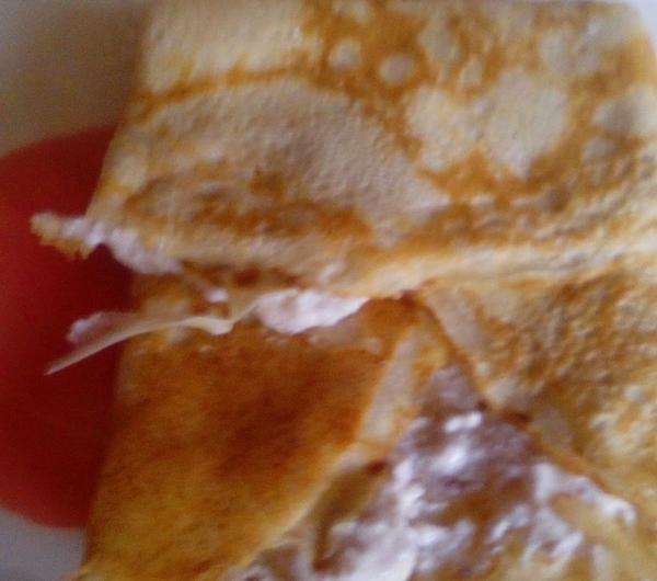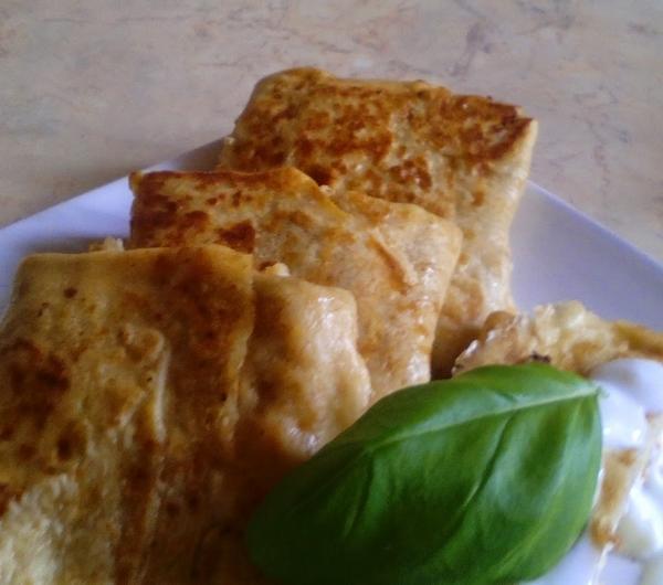 SKŁADNIKINa ciasto2 szklanki maki pełno ziarnistej2 jajkaszklanka mlekawoda mineralna gazowanaolej i masło do smażeniaszczypta soli i szczypta cukruNadzienie:1/2 kg twarogu3-4 łyżki cukru ( tutaj w zależności jak lubimy słodkie)1 łyżeczka cynamonu2 łyżki jogurtu naturalnego do rozrzedzeniaWYKONANIEŻółtka oddzielamy od białek. Białka ubijamy na sztywną pianę.Mieszamy mleko i wodę, dodajemy żółtka. Cały czas mieszając dodajemy stopniowo mąkę. Mieszamy aż ciasto będzie miało jednolitą konsystencję.Dodajemy sól, cukier oraz pianę z białek i ponownie dokładnie Mieszamy.Ciasto odstawiamy na ok pół godziny.W tym czasie przygotowujemy farsz. Twaróg rozdrabniamy , dodajemy wszystkie składniki i dokładnie mieszamy. Nie powinien , być za rzadki, więc uważamy z jogurtem.Na patelni rozgrzewamy tłuszcz. Do ciasta dodajemy wodę , by otrzymać odpowiednią konsystencję słodkiej śmietanki.Ciasto nalewamy chochlą na patelnię, smażymy na zloty kolor z obu stron.Smarujemy farszem i składamy w dowolny sposób. Ja w kopertę.Naleśniki obsmażmy na maśle z obu stron. Podajemy polane jogurtem naturalnym lub śmietaną ( jak kto woli) i posypane cukrem.