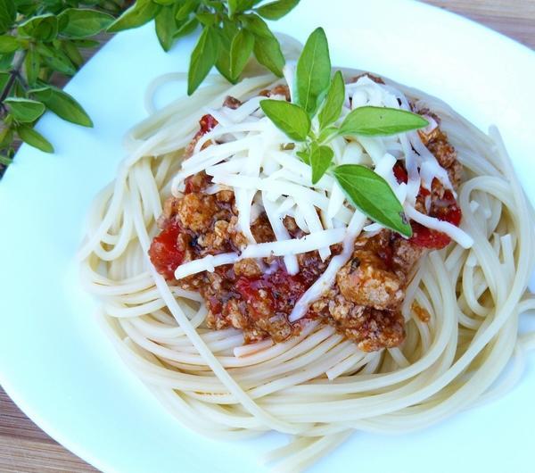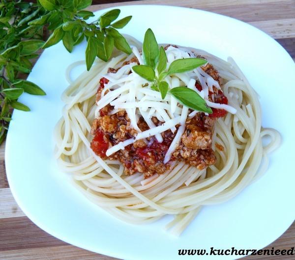 Spaghetti30 dag mięsa mielonego mieszanego – u mnie pół na pół łopatka wieprzowa i filet drobiowysłoik sosu słodko-kwaśnego własnej robotyzioła prowansalskieczosnek granulowanyser żółty do posypaniamakaron typu spaghettiMięso podsmażamy na łyżce oleju.Do mięsa dodajemy sos ze słoika – dusimy około 10 minut na małym ogniu.Doprawiamy solą, pieprzem, czosnkiem i ziołami prowansalskimi.Makaron gotujemy al dente i przekładamy na talerz.Na makaron wykładamy sos mięsny i posypujemy startym serem.