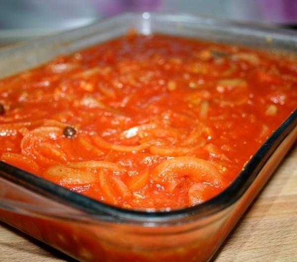 Sposób przygotowania:Rybę myjemy a następnie osuszamy ręcznikami papierowymi. Rybę kroimy na mniejsze kawałki, doprawiamy solą, pieprzem, papryką ostrą i słodką, skrapiamy sokiem z cytryny i odstawiamy na chwilę. Każdy kawałek ryby panierujemy w zarodkach pszennych i smażymy na odrobinie oliwy lub pieczemy w piekarniku. Usmażoną/ upieczoną na złoto rybę przekładamy do naczynia, w którym będziemy trzymać ją aż do następnego dnia.Zabieramy się za sos : cebulę obieramy i kroimy w piórka, podsmażamy na tej samej patelni do momentu aż cebula odrobinę zmięknie. Zalewamy wodą, dodajemy ziele angielskie, listek laurowy i doprawiamy cukrem. Sos pozostawiamy do zagotowania. Dodajemy przecier pomidorowy (opcjonalnie możemy dodać również pomidory w puszce) i doprawiamy do smaku solą, pieprzem, odrobiną chilli i sokiem z jednej dużej cytryny. Gotujemy chwilę i jeszcze gorącym sosem zalewamy rybę.