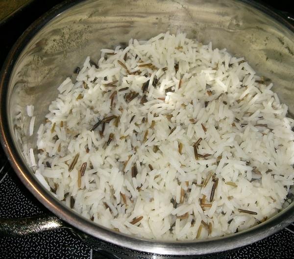 Podajemy z ryżem, ja dzisiaj polecam mieszankę basmati i dzikiego