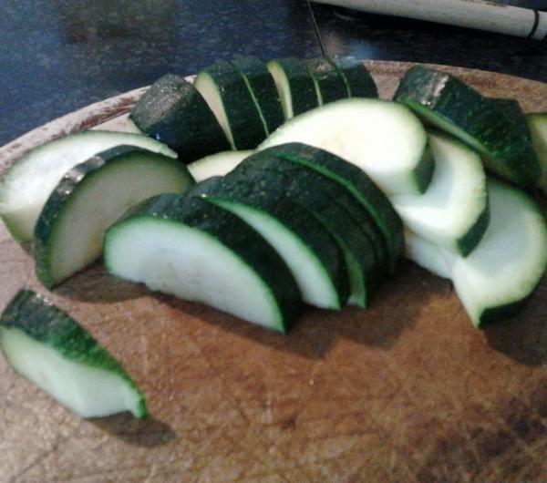 6. Cukinię kroimy w półplasterki