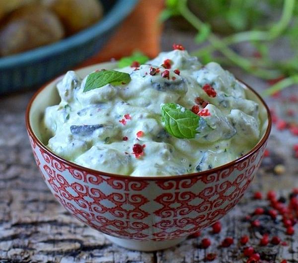 Tzatziki ze smażonej cukiniiSkładniki: na 4 porcje1 zielona cukinia400 ml greckiego jogurtu, 10% tłuszczu2 ząbki czosnkugarść liści mięty pieprzowejsól i pieprz do smaku1 łyżka soku z cytrynyoliwa do smażeniaWykonanie:Pokrój cukinię w kostkę i usmaż na oliwie. Ostudź. Pokrój grubo miętę i dodaj do jogurtu. Dopraw jogurt sokiem z cytryny, solą i pieprzem, a następnie dodaj ostudzoną cukinią. Wymieszaj i gotowe.Polecane przepisySałatka z bobu i grillowanych buraczkówRustykalna sałatka ziemniaczanaSmażona cukinia na ostroŁosoś z grilla z lekką sałatkąSałatka z pesto do grilla