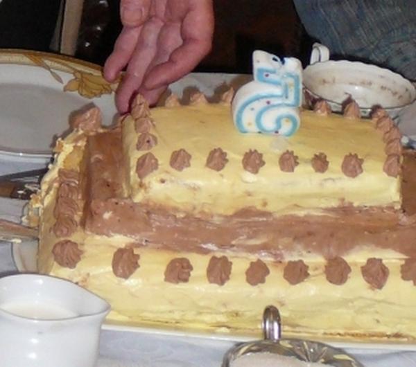 Po przywitaniu wznieśliśmy toast za pomyślność bloga .Ja przy pomocy Córci , która mi bloga założyła i pomagała w jego początkach, zrobiłyśmy tort na bazie biszkoptu z masą ajerkoniakową.
