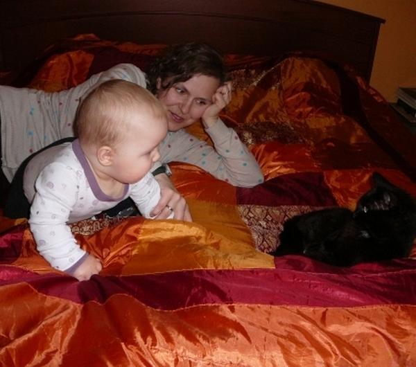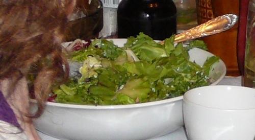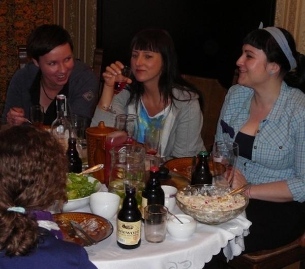 Dojadaliśmy do tego sałatki – moja ryżowa cieszyła się sporym powodzeniem, podobnie jak ta z porów . Prócz tego była improwizowana sałata z pomidorami w winegrecie, zrobiona wspólnie paprykowo-ogórkowo-pomidorowa i ogórkowa ze słoiczka.Czas w miłej atmosferze mijał szybko, na koniec posiedzieliśmy jeszcze przy kominku. Dziękuję wszystkim, w tym też Ani z Green Plums, która urwała się z zajęć na uczelni, by choć krótko pobyć z nami, za przybycie, prezenty i miłe towarzystwo przy świętowaniu tak ważnej dla mnie rocznicy.