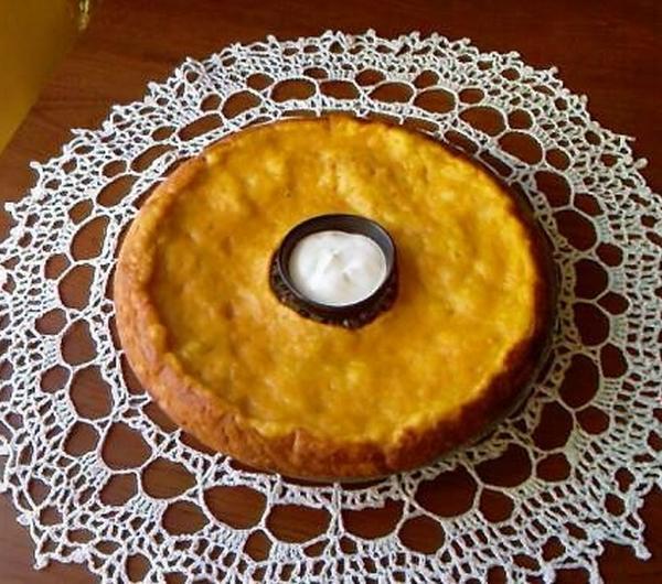 Chciałam zrobić coś wiosennego i oryginalnego na waniliowy weekend i postanowiłam wypróbować , czy placek marchewkowy uda mi się na patelni parowej Dry Cooker, na której już zrobiłam placek szpiankowy i ciasto czekoladowe, które pokażę niebawem.Do mojego podstawowego przepisu na placek marchewkowy postanowiłam dodać twarożek waniliowy i cukier z prawdziwą wanilią, żeby dostosować się do wymagań weekendu.Wyszło ciasto wilgotne , pyszne, w smaku i konsystencji przypominające nieco sernik.1,5 szklanki startej na drobnej tarce marchewkiszklanka i 2 łyżki mąki2 jajka1/3 szklanki olejuserek homogenizowany waniliowy 125 głyżka cukru z waniliąłyżka cukru trzcinowego1/4 szklanki wody gazowanej2 łyżeczki proszku do pieczeniaDo miski ze startą marchewką wbilam jajka i mieszając trzepaczką-rózgą dodawałam stopniowo olej, serek, cukier, mąkę z proszkiem i wodę gazowaną. Ciasto miało konsystencję gęstego ciasta naleśnikowego.Rozprowadziłam je równomiernie na posmarowanej olejem patelni i pamiętając o zawartości serka, nastawiłam od razu mały ogień w palniku, po czym przykryłam pokrywką. Ciasto rosło stopniowo, wyrosło najpierw sporo, ale potem – pewnie przez dodatek serka-opadło. Po około 40 minutach odstawało od brzegów patelni, spróbowałam patyczkiem- był suchy, więc wyłączyłam palnik i zostawiłam pod przykryciem 10 minut. Potem odkryłam i wystudziłam. Dało się wyjąć w całości z patelni a na talerzu w dziurkę po kominku patelni wstawiłam miseczkę z jogurtem – bo to ciasto dobrze smakuje z kleksem jogurtu.