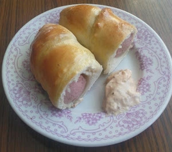 Kolejny przepis na hot dogi...0,5 kg mąki1 szkl. mleka5 dkg drożdży5 łyżek oleju3 łyżki cukruszczypta soli2 jajkaparówkiMleko podgrzać i dodać drożdże,cukier i trochę mąki.Odstawić w ciepłe miejsce do wyrośnięcia.Do miski wsypać pozostałą mąkę dodać olej,sól, roztrzepane jajko i wyrośnięte drożdże.Ciasto dobrze wyrobić.Rozwałkować dość cienko i pokroić w paseczki ok 4 cm. Posmarować białkiem z drugiego jajka.Owinąć wcześniej obraną parówkę w spiralkę.Tak przygotowane parówki dość luźno układamy na blaszce posmarowanej olejem.Pozostałe białko mieszamy z żółtkiem i smarujemy parówki po zewnętrznej stronie.Pieczemy ok 25 min na złoty kolor.Sos:2 łyżki majonezu2 łyżki keczupu2 łyżki musztardy2 ząbki czosnkuCzosnek przecisnąć przez praskę , wymieszać z resztą składników.
