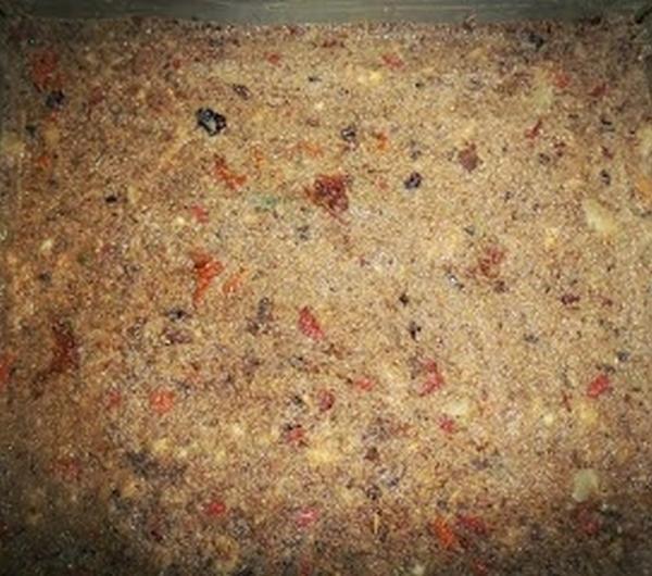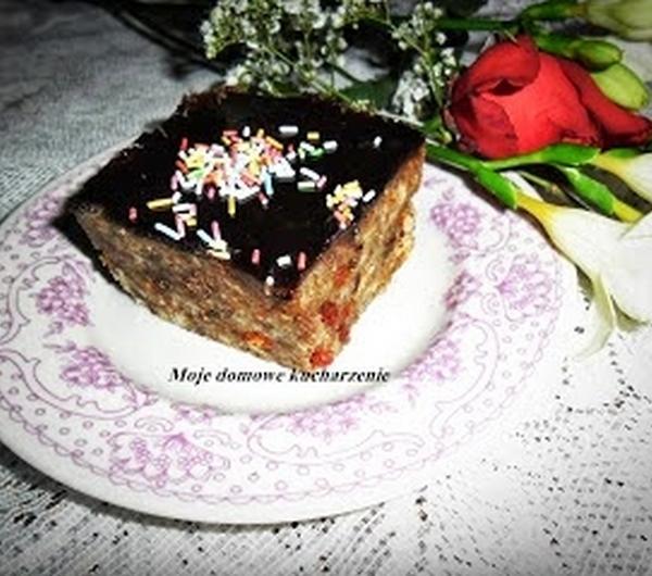 bakalie i wymieszać.Wyłożyć na blaszkę, ucisnąć i wygładzić powierzchnię. Wierzch polać polewą.