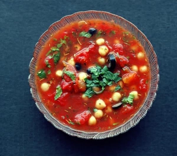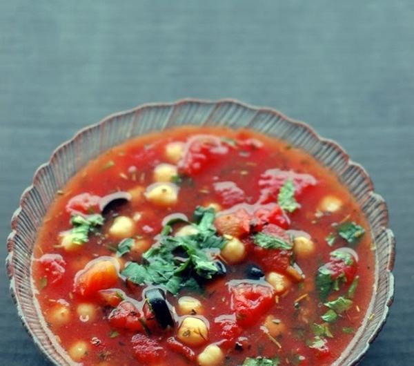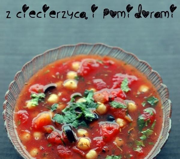 Składniki:200g ciecierzycy,puszka krojonych pomidorów,2 ząbki czosnku,kilka czarnych oliwek,1/2 pęczku natki pietruszki,1/2 łyżeczki lubczyku,1/2 łyżeczki bazylii,1/2 łyżeczki rozmarynu,1/2 łyżeczki pieprzu cayenne,sól i pieprz do smaku.