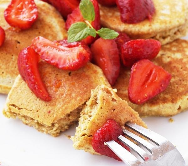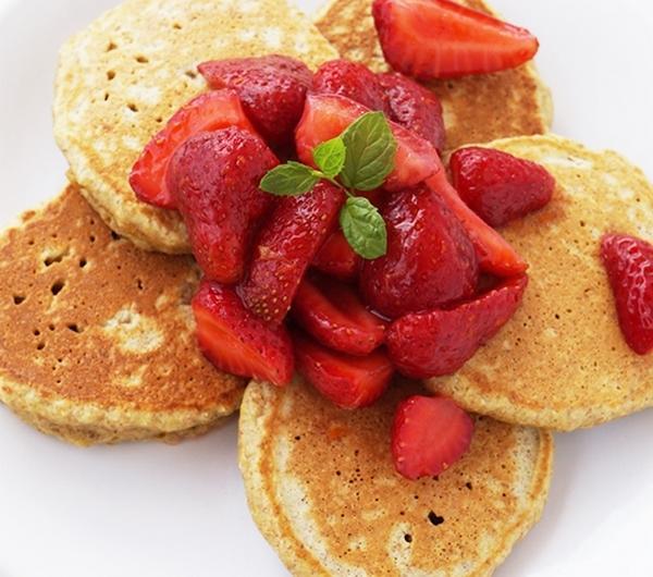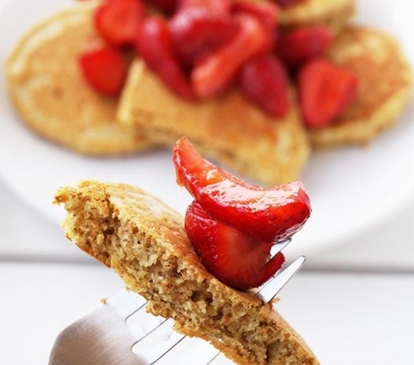 Składniki (na 2 porcje - kilkanaście placuszków)- placuszki:125 g mąki pszennej razowej1 łyżeczka proszku do pieczeniaszczypta soli1,5 łyżki drobnego cukru1 jajkookoło 130-140 ml mlekałyżka oleju lub roztopionego masła+ olej do smażenia- do podania:garść truskawekłyżeczka cukrusok z połówki małej pomarańczyopcjonalnie: starta skórka z połowy pomarańczyPrzygotowanie:Truskawki umyj, pozbaw szypułek i pokroj na połówki lub ćwiartki. Posyp cukrem i wciśnij sok pomarańczowy. Dla intensywniejszego aromatu pomarańczy dodaj także starta skórkę. Odstaw na bok i zacznij przygotowanie placków.Do miski przesiej mąkę z proszkiem, dodaj sól, cukier i wymieszaj. Zrób wgłębienie na środku i wbij jajko oraz wlej połowę mleka. Zaczynając od środka rozmieszaj jajka i mleko z mąką, a następnie dodaj olej (lub masło) i tyle mleka, aby uzyskać ciasto o konsystencji gęstej śmietany. Rozgrzej patelnię i wlej kilka kropel oleju - ja rozprowadzam je dodatkowo za pomocą zwiniętego papierowego ręcznika. Smaż placuszki na niezbyt dużym ogniu, aż na brzegach pojawią się bąbelki. Przewróć je i smaż jszcze chwilę z drugiej strony. Podawaj póki ciepłe z dodatkiem wcześniej przygotowanych truskawek.