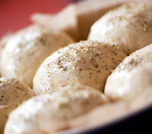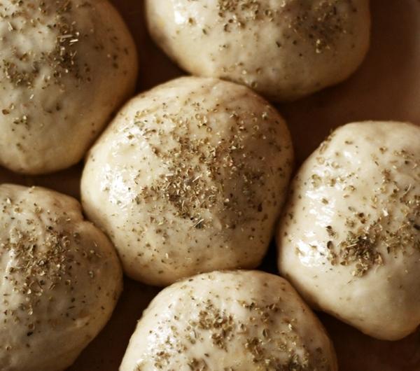 Przygotowanie:jeśli używacie suszonych drożdży, wystarczy wymieszać dokładnie składniki i zagnieść ciasto, aż będzie gładkie i elastyczne, jeśli jednak używacie drożdży świeżych, trzeba najpierw przygotować zaczyn: do miski z ciepłą wodą wkruszamy drożdże, dodajemy łyżeczkę cukru, posypujemy trzema łyżkami mąki, dokładnie mieszamy i odkładamy przykryte w ciepłe miejsce na około 15 min, aż drożdże się spienią. W międzyczasie przesiewamy 3,5 szkl. mąki do miski, dodajemy sól, mieszamy, dodajemy gotowy zaczyn drożdżowy, 1 jajko, mieszamy i na końcu dodajemy olej. Zagniatamy ciasto, a gdy składniki się połączą przekładamy na lekko podsypaną mąką tortownicę i zagniatamy aż będzie gładkie i elastyczne. Gotowe ciasto formujemy w kulę, smarujemy lekko oliwą, przekładamy do czystej miski i odkładamy na 1 godzinę do wyrośnięcia w czasie gdy ciasto rośnie przygotowujemy farsz pieczarkowy: cebulę obieramy i kroimy w kostkę, pieczarki dokładnie myjemy i kroimy na mniejsze części, nie ma znaczenia jak, następnie rozgrzewamy na patelni odrobinę oleju, podsmażamy chwilę cebulę, gdy się zeszkli dodajemy pieczarki i podsmażamy aż stracą objętośćpodsmażone pieczarki odcedzamy na sitku i studzimywyrośnięte ciasto zagniatamy jeszcze przez 1-2 minuty, po czym dzielimy na 16 części (ja podzieliłam na 12 i buły wyszły mi dość duże, myślę więc, że 16 bułek będzie akurat), każdą część spłaszczamy, kładziemy na dłoń, na środek nakładamy dość dużą łyżkę farszu i zaklejamy, formujemy w kulkę i układamy na okrągłej blaszce wyłożonej papierem do pieczeniabułeczki układamy łączeniami do dołu, w około centymetrowych odstępach od siebie (bułki jeszcze urosną w piekarniku) – z tej ilości ciasta wyszły mi 2 okrągłe blaszkiułożone bułki smarujemy z wierzchu roztrzepanym jajkiem i posypujemy ziołamipieczemy ok. 15-20 min (w zależności od piekarnika) w temp. 200ºC, wyjmujemy kiedy będą ładnie zarumienione