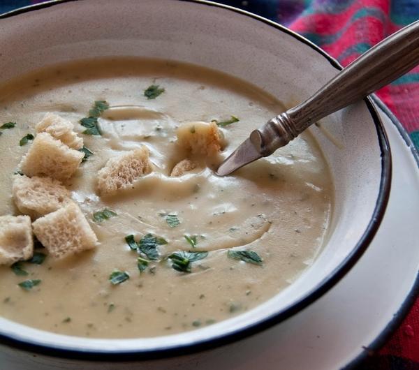 Nie będę tego ukrywać fanką zup to ja nie jestem, ale są takie za, którymi przepadam jak np. krem szparagowy, zupa grzybowa, rosół mamy i oczywiście kartoflanka. Kartoflanka przypomina mi dzieciństwo, moja babcia ją gotowała. Moja jest trochę inna od tej babcinej, ale zapewniam, że jest równie pyszna. Kremowa, delikatna z wyczuwalnym smakiem pietruszki i rozmarynu. Tak jak każdy krem przygotowuje się bardzo szybko wystarczy mieć bulion i ziemniaki.Składniki:1 l bulionu ( tylko nie z kostki!)9 średniej wielkości ziemniakówduża cebula1 mała pietruszka1 łyżeczka natki pietruszki1 łyżka śmietany 18% albo 36%1 łyżka masła1 łyżeczka olejusól i pieprz1/2 łyżeczki drobno pokrojonego rozmarynu2-3 kromki czerstwego chlebakilka kropel oliwy z oliwekDo bulionu wkładamy drobno pokrojone ziemniaki i korzeń pietruszki (oczywiście warzywa powinny być umyte i obrane). Gotujemy do miękkości. Na maśle i oleju podsmażamy drobno pokrojoną cebulę. Następnie dodajemy ją do zupy. Chwilę jeszcze gotujemy i całość miksujemy do uzyskanie gładkiej masy. Rozprowadzamy w zupie śmietanę, dodajemy natkę pietruszki, rozmaryn, doprawiamy solą i pieprzem. Zupę przed podaniem posypujemy grzankami.Grzanki: chleb kroimy w kostkę, polewamy odrobiną oliwy i wkładamy do piekarnika nagrzanego do 180*C na około 10 minut, aż chleb stanie się chrupiący.* jeśli lubimy możemy dodać drobno pokrojony i podsmażony boczek.