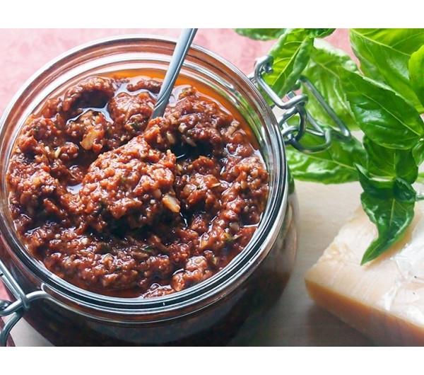 English versionBresaola, pear and gorgonzola pizza(1×32 cm)Ingredients:1 portion of pizza dough, store bought or homemade from this or this recipe1 yellow onion, thinly slicedpinch of salt and pepper1 tsp fresh thyme1 pear, cored and thinly sliced1/2 cup gouda, shredded1/2 cup mozzarella, shredded1/4 cup gorgonzola, crumbled6-7 slices of bresaola or prosciutto, rolled up and sliced thinlyPreparation:Preheat oven to 240 oC. Grease a baking sheet or pizza stone with oil and roll the pizza dough out onto the sheet.Heat a medium sized skillet over medium high heat with 1 tbsp of oil. Add the sliced onion and cook until it softens and turns golden brown (about 10 minutes).Brush the teaspoon of olive oil all over the top of the dough, then sprinkle on salt, pepper, the fresh thyme and place the onionSprinkle the shredded cheeses and gorgonzola crumbles all over the pizza. Finish the pizza off by placing the slices of pear and prosciutto evenly over the top of the pizza.Bake the pizza for 15-20 minutes or until it is bubbly and golden. Remove from the oven and serve immediately.Enjoy!