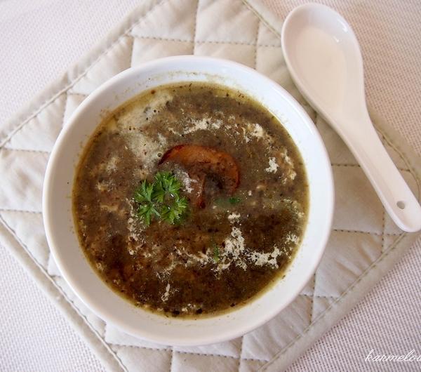 English versionMushroom soup (4 serves)Ingredients:350 g button mushrooms250 g potatoes, peeled and roughly chopped28 g butter2 1/2 tbs