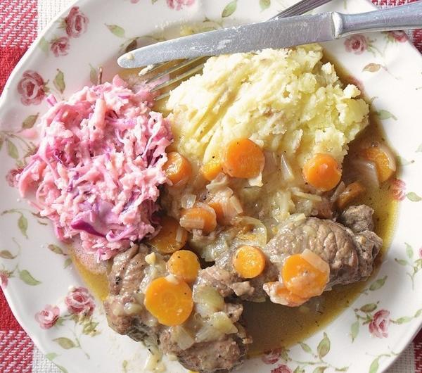 Składniki:4 kotlety wołowe (każdy po około 100 g), najlepiej np. ligawa albo udzieckilka ogórków kiszonych2 marchewki2 spore cebulki szalotki2 listki laurowe2-3 ziarenka ziela angielskiego2-3 ząbki czosnku1 czubata łyżka mąki1 łyżka masła1 łyżka oliwysól, pieprz, słodka mielona papryka, odrobina suszonego tymianku i oreganoDodatki: Np. pure z ziemniaków i ulubiona surówkaPrzygotowanie:Mięso roztłuc na dość cienkie kotlety, obsypać z obu stron lekko solą, pieprzem i słodką papryką. Do środka włożyć ogórki i dokładnie zawinąć (najlepiej spiąć wykałaczkami, żeby się nie rozpadły). Na patelni rozgrzać olej oraz masło, mięso oprószyć delikatnie mąką i obsmażyć dokładnie z obu stron (uwaga! robimy to na dość małym ogniu żeby masło się nie przypaliło). Kiedy mięso jest już lekko zrumienione dodajemy posiekaną cebulę i smażymy aż się zeszkli. Po tym czasie dodajemy posiekany czosnek oraz pokrojone w plasterki marchewki. Wszystko zalewamy wodą (około 2 szklanki), wrzucamy listki laurowe i ziele angielskie. Zrazy przykrywamy i dusimy na małym ogniu około godzinę, aż mięso będzie miękkie (powinno rozpływać się w ustach) i sos zgęstnieje. W między czasie co jakiś czas mieszamy i sprawdzamy czy sos za bardzo nie odparował. Kiedy zrazy są już miękkie wszystko jeszcze doprawiamy do smaku solą i pieprzem oraz podajemy, najlepiej z tradycyjnie z ziemniakami i surówką
