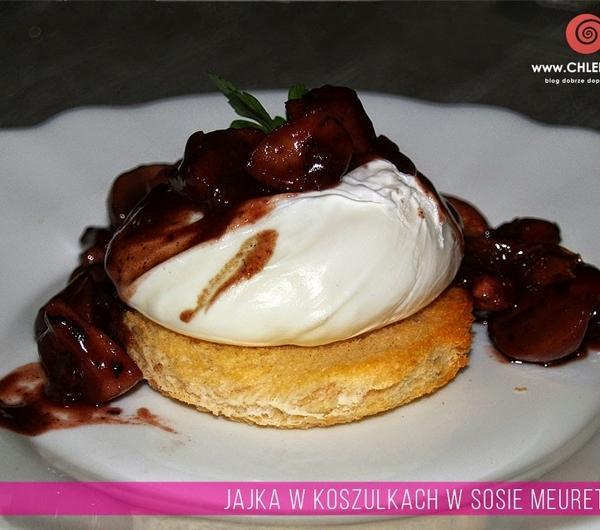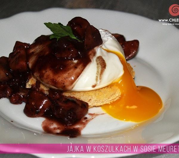 Najpierw, na samym początku, przeklnę: zajebiocha! Ojajebie, super!A teraz możemy przejść do dalszej części wpisu :) Madzia teraz hurtowo chodzi na różne kursy kulinarne: kuchnia włoska, francuska, indyjska, cokolwiek. Hurtowo je zalicza. A niech ma, niech sobie chodzi. Ja też mam z tego korzyści. I to dwie co najmniej. Po pierwsze mam wolny wieczór (jak tylko Magda to przeczyta to mi się dostanie), a po drugie jak wróci to mi robi wszystko to co na tych kursach się nauczyła. I teraz właśnie zrobiła mi fantastyczne jajka w koszulkach z sosem. Który to sos nazywa się meurette. To z kursu kuchni francuskiej. Sos jest z pieczarek, boczku i czerwonego wina. I jeszcze paru innych pysznych rzeczy :) A mianowicie:Na 4 osoby:4 jajka1 szklanka czerwonego wina wytrawnego200 g boczku pokrojonego w kostkę1 szalotka100 g pieczarek1 listek laurowy2 ząbki czosnkupół pęczka natki pietruszki1 łyżka mąki pszennej1 łyżka octu z białego winaNa początek informacja: z pieczarek będą nam potrzebne tylko kapelusze. Nóżki możemy wykorzystać do czegoś innego, np. na zupę.Na patelni podsmażamy boczek aż się zrumieni. Zdejmujemy z patelni i odstawiamy na bok. Na tej samej patelni podsmażamy drobno posiekaną szalotkę. Po kilku chwilach dodajemy też pokrojone na ósemki pieczarki, zmiażdżony bokiem noża czosnek razem z łupinką, podsmażony wcześniej boczek i smażymy jeszcze przez chwilę. Dodajemy mąkę i dokładnie mieszamy. Wlewamy wino, dodajemy listek laurowy, pół pęczka natki pietruszki w całości, bez krojenia, mieszamy i gotujemy aż wino się zredukuje i powstanie gęsty sos.Teraz robimy grzanki: bierzemy 4 kromki pieczywa tostowego i szklanką wycinamy okrągłe kształty, tak żeby pozbyć się skórki, a kromki miały kształt koła (te "odpadki" przydadzą się później do wytarcia sosu z patelni, uwierzcie mi, że rewelacja). I grillujemy kilka minut w piekarniku, aż będą rumiane i chrupiące.Teraz jajka: gotujemy wodę z łyżką octu z białego wina. Woda ma leciuteńko bąblować tylko, ledwo ledwo. Nie może wrzeć za bardzo, bo zniszczy strukturę białka. Jajko wbijamy do miseczki, za pomocą łyżki robimy wir w gotującej się wodzie i wlewamy do tego wiru jajko. Po dwóch minutach wyjmujemy za pomocą łyżki cedzakowej. I tak po kolei z każdym jajkiem robimy.Jajka układamy na tostach i polewamy sosem.Smacznego!