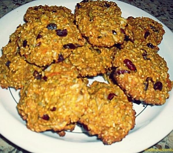 ciasteczka dyniowe i właśnie przesłała mi przepis i zdjęcia. A więc dzielę się nim:SKŁADNIKI:250g przecieru z dyni50g