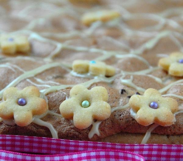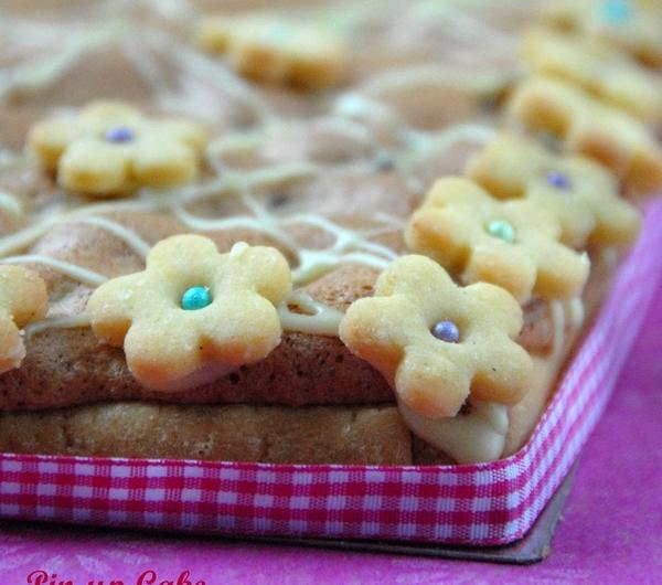 suszoną żurawiną. Przepis znalazłam na kartce z kalendarza i przedstawiam własną interpretację.Składniki na blaszkę o wymiarach 21 x 25 cm + kwiatuszki:Spód:1 szklanka