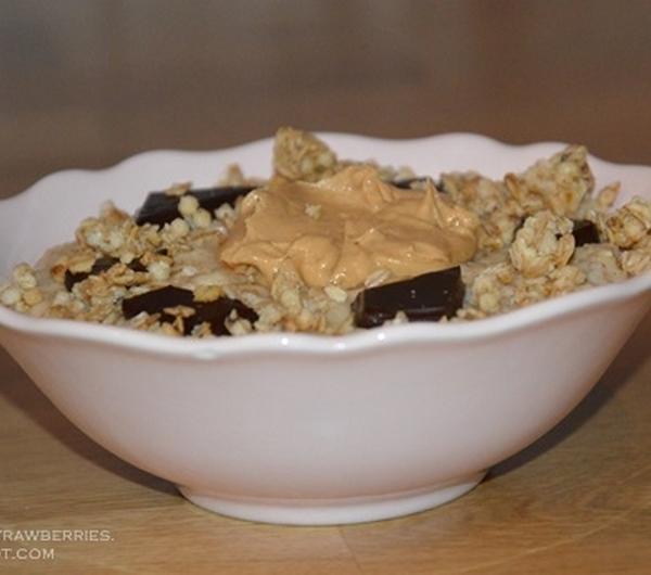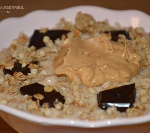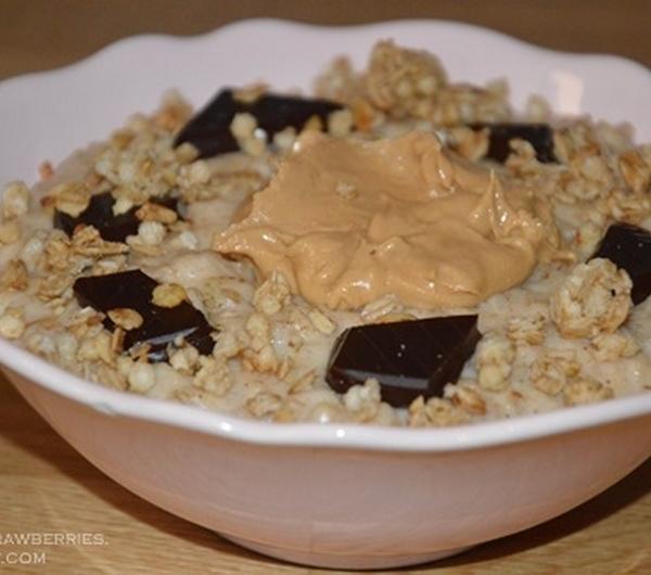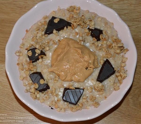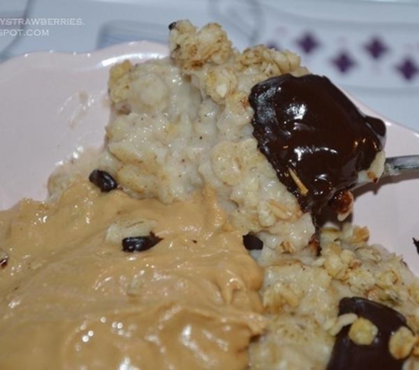gorzką czekoladą 85% oraz crunchy naturalnymporridge with milk,