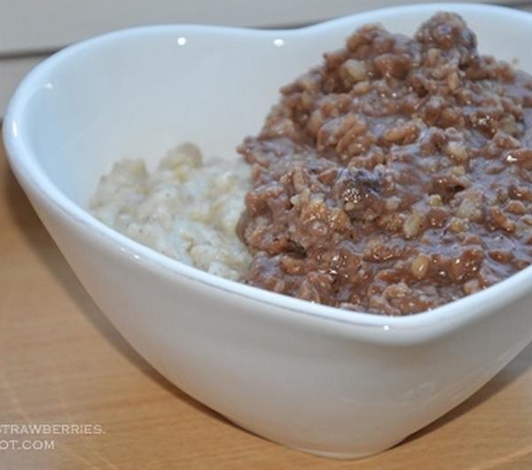 pudding porridge with milk with the ground hazelnuts and cocoa