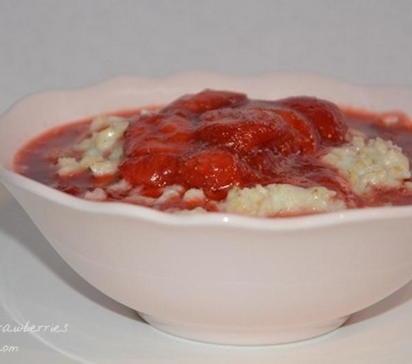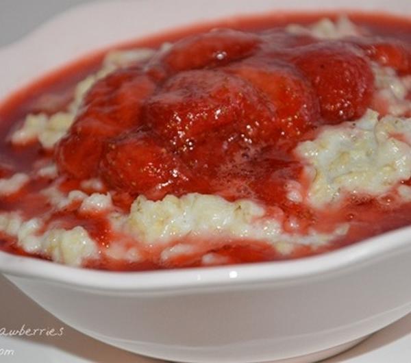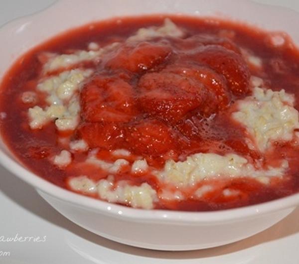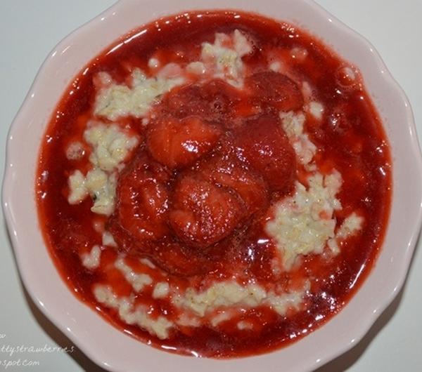 truskawkowymporridge with milk, grated coconut, almonds and strawberry saucemój obiadek to :