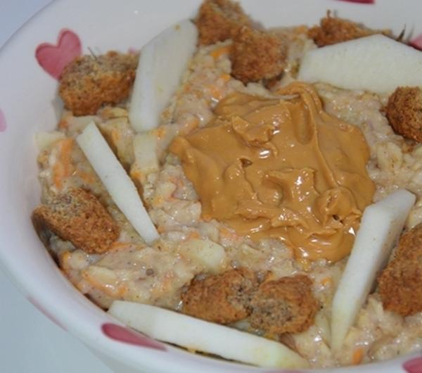 masłem orzechowymcarrot-apple porridge with milk, cinnamon, ginger, otrębusek and peanut butterUważam, że idealnym dodatkiem np. zamiast