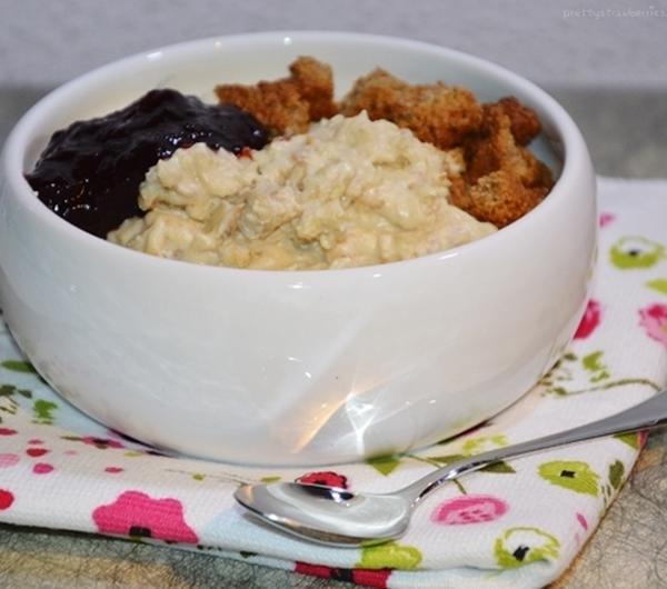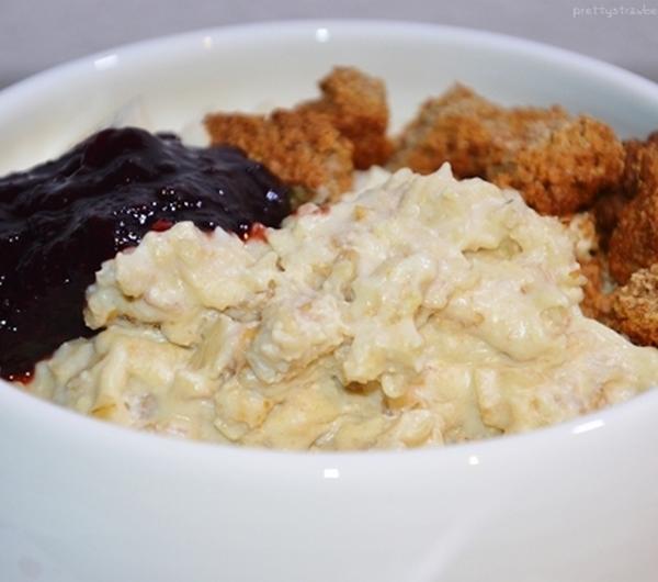 dżemem z czarnej porzeczki oraz otrębuskiemnutty oatmeal with soy milk and