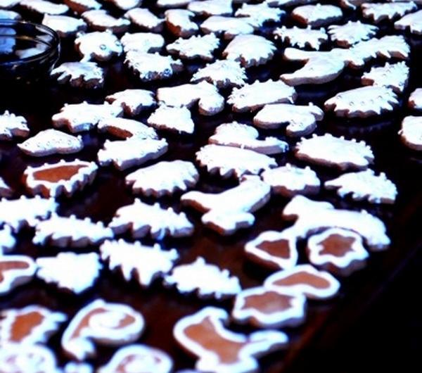 4. Dekorujemy pierniczki przy pomocy rękawa cukierniczego, pędzelka lub noża. Odstawiamy do wyschnięcia na parę godzin.