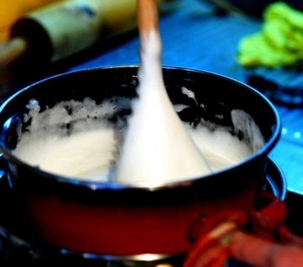 3. W międzyczasie można przygotować lukier. Do garnka wlewamy wodę i ocet, następnie wsypujemy cukier. Gotujemy do uzyskania nitki, a potem piórka - tak :) Nitka wygląda tak: